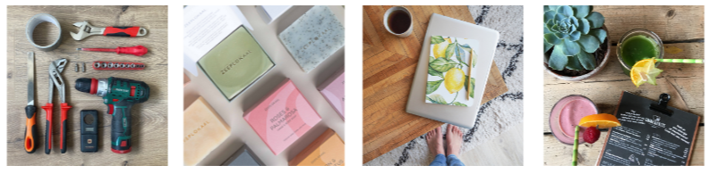 Het is zeker wel de moeite waard om op Pinterest ‘knolling’ en ‘flatlays’ op te zoeken ter inspiratie.
